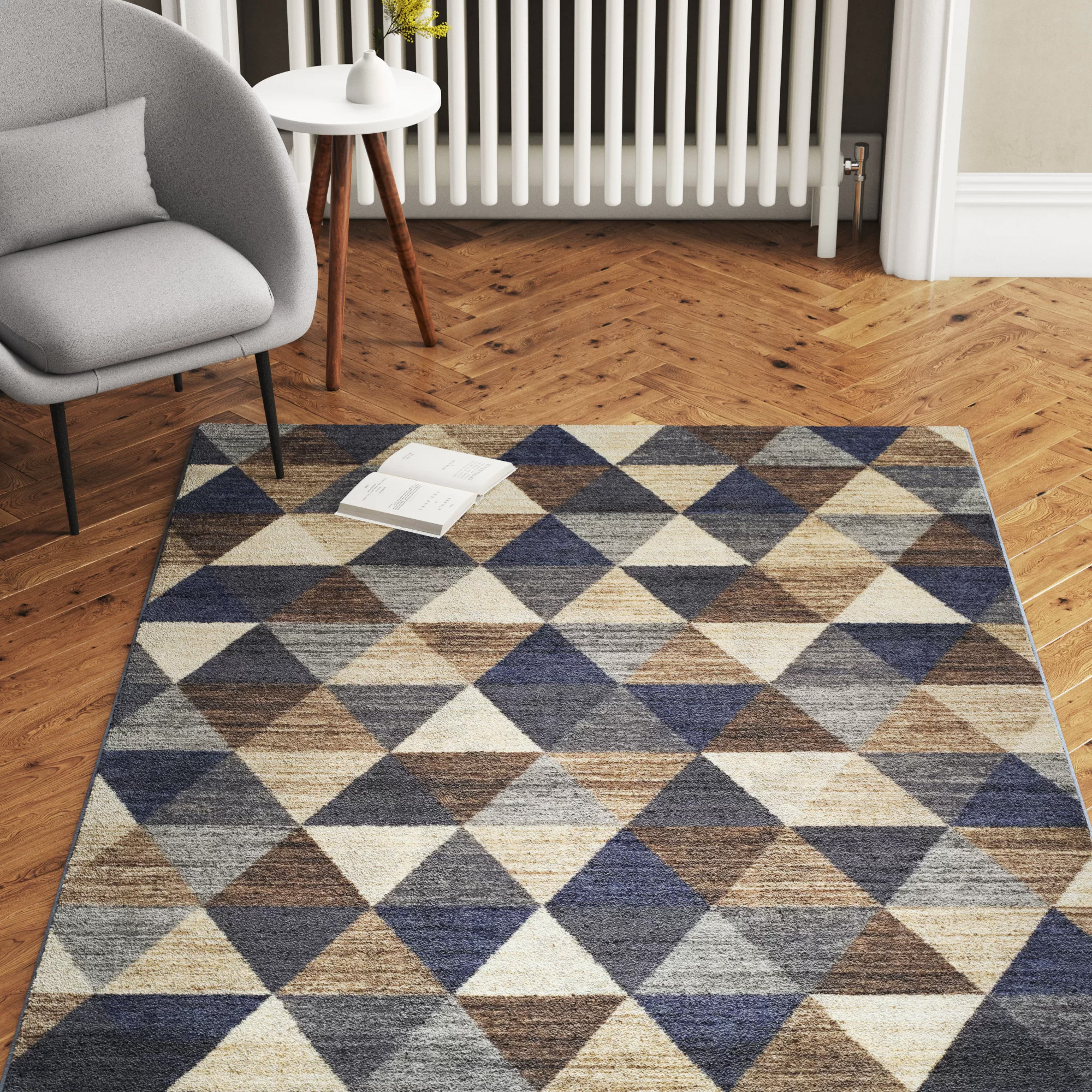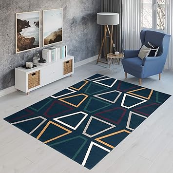 Canvas Teppich Wohnzimmer Kurzflor Modern Dreiecke Design Grau Creme Blau Mehrfarbig Jugendzimmer Schlafzimmer Okotex Tapiso Teppiche Online