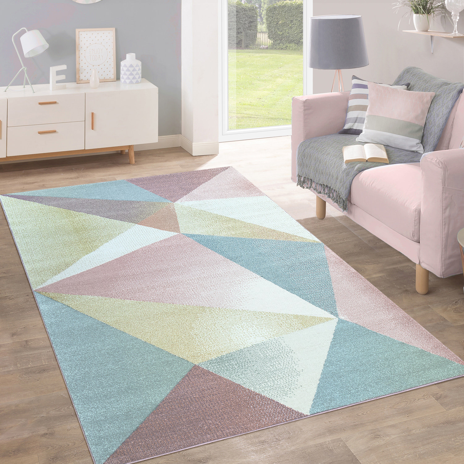 Teppich Wohnzimmer Kinderzimmer Jugendzimmer Pastell Moderne Muster Rosa Turkis Ebay