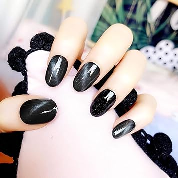 Fairvir Falsche Nagel Katzenauge Kurz Oval Gefalschte Nagel S Hochzeit Geburtstag Pkunstei Clip Auf Nageln Fur Frauen Und Madchen Schwarz Amazon De Beauty