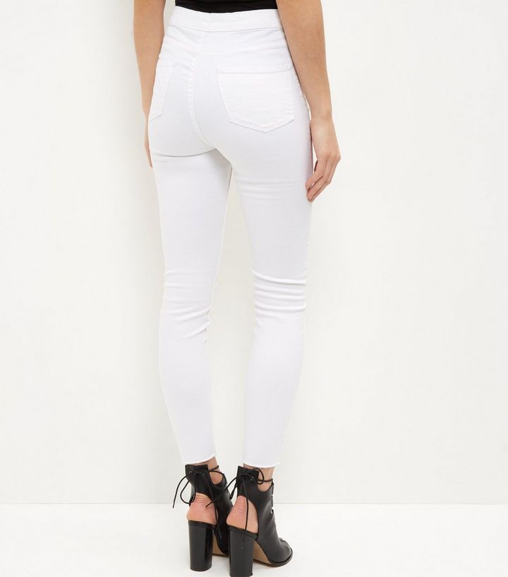 White High Waist Super Skinny Fray Hem Jeans New Look