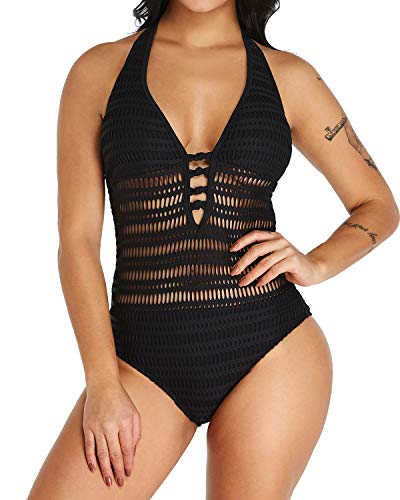 Schwarzer Mesh Ausschnitt Strappy Tankini Badeanzug Damen Damen Bademode