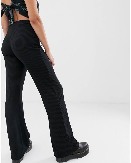 Gerippte Jersey Schlaghose In Schwarz Missguided