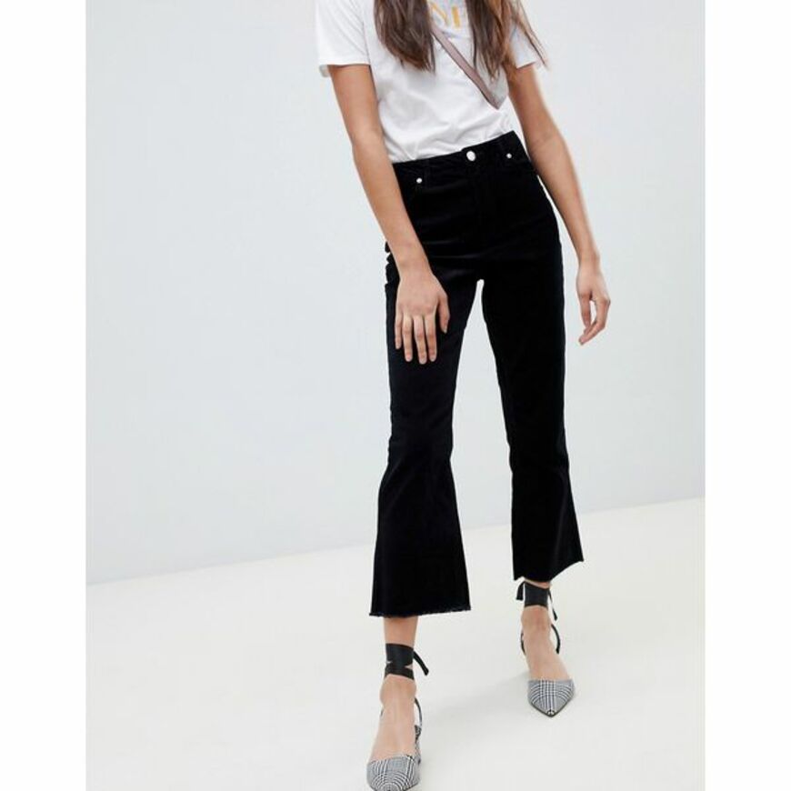 Bershka Gerippte Schlaghose In Schwarz Asos Outfit Outfit Ideen Schlaghose