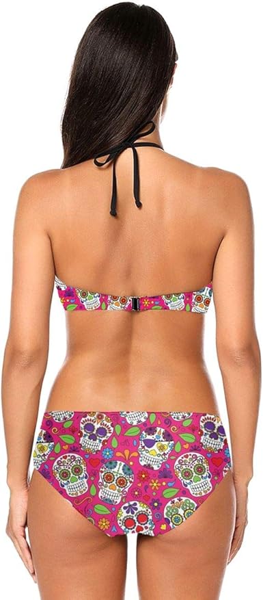 Mark Stars Sugar Skull Women S Swimsuit Bikini Set Halter Swim Beach Holiday Amazon Co Uk Clothing