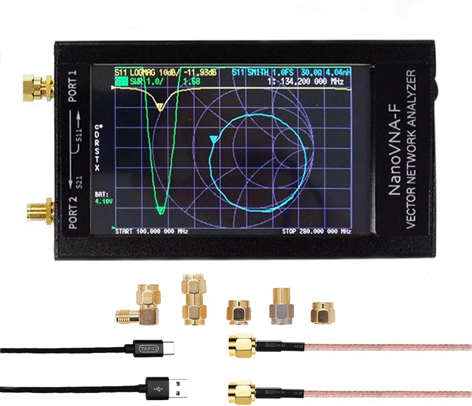 Slickbox Nanovna F Vektor Netzwerkanalysator Hf Vhf Uhf Uv Vna 50 Khz 1000 Mhz 4 3 Zoll Lcd Batterie Aluminiumgehause Messung Der S Parameter Spannung Swr Phase Verzogerung Smith Diagramm Amazon De Elektronik