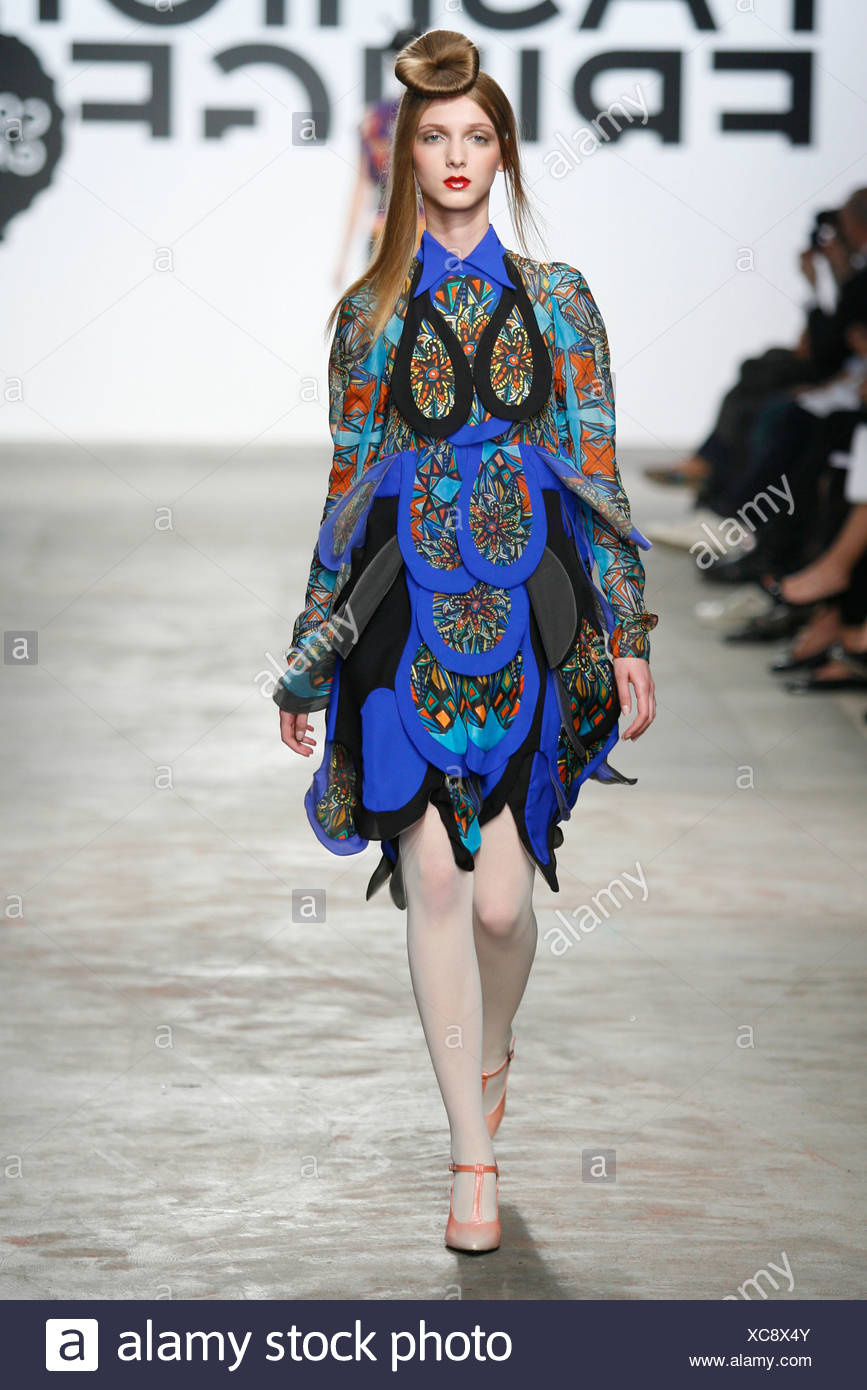 Sarah Easom Fashion East London Bereit Zu Tragen Fruhling Sommer Dunkel Blau Ethnischen Print Shirt Kleid Weisse Strumpfhosen T Bar Schuhe Und Stockfotografie Alamy