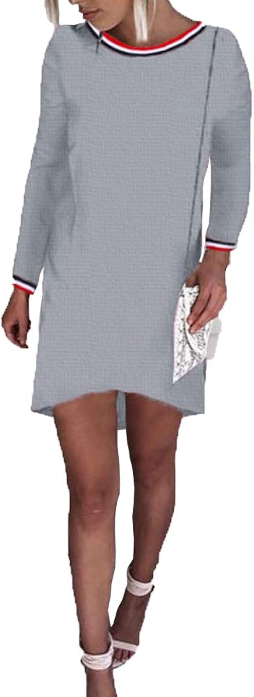 Yesgirl Freizeitkleider Damen T Shirt Kleid Rundhalsausschnitt Gestreifter Ausschnitt Minikleid Lose Tunika Mit Langen Armeln Kleid Temperament Baumwolle Amazon De Bekleidung