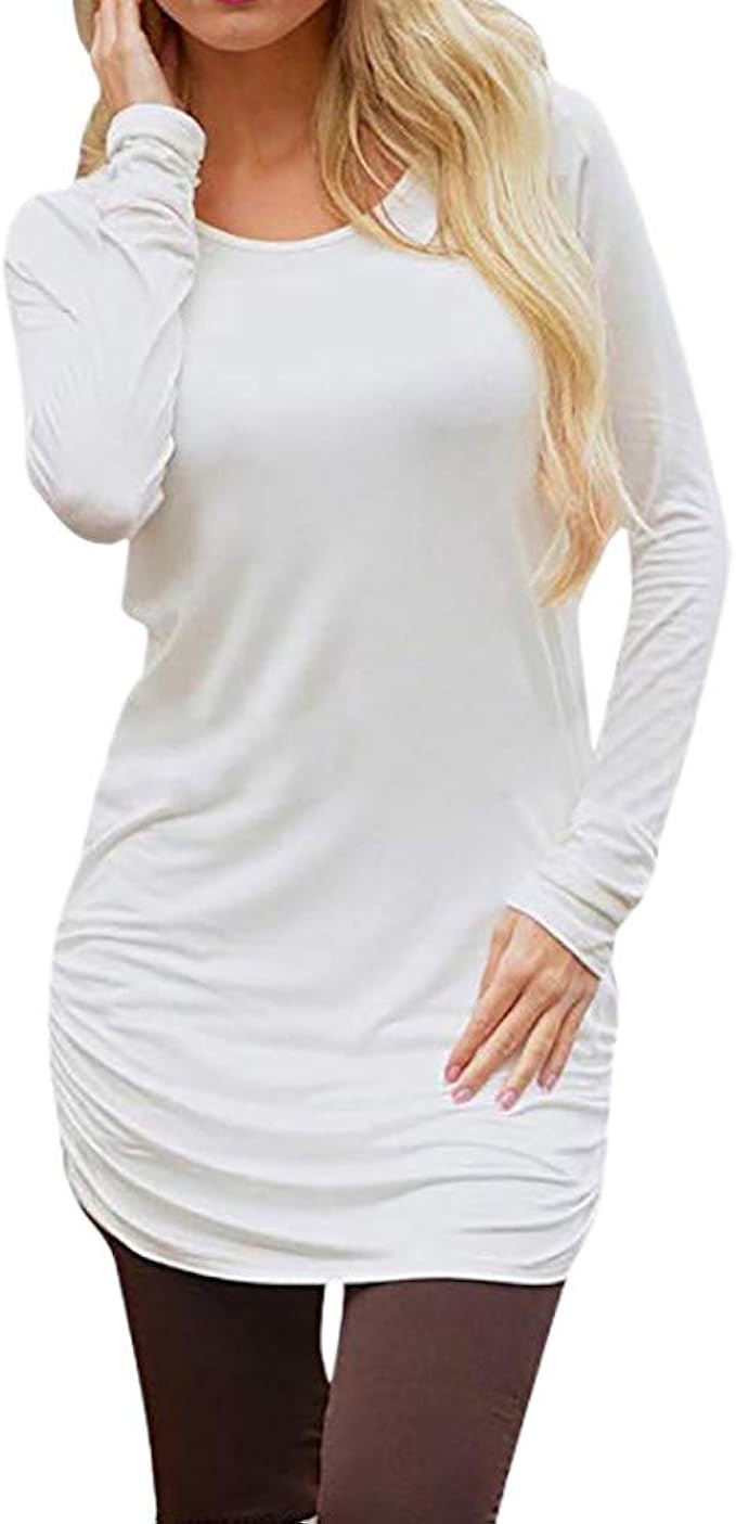 Mrulic Damen Beilaufig Langarm Slim Geraffte Tunika T Shirt Kleid Minikleid Pullover Strumpfhosen Weiss M Amazon De Bekleidung