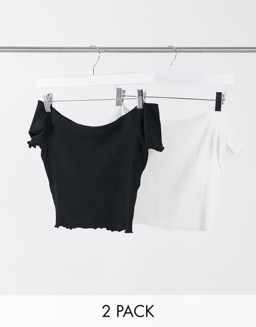 Glamorous 2er Pack Kurze Schulterfreie Oberteile Mit Gekrauseltem Saum In Schwarz Und Weiss Asos