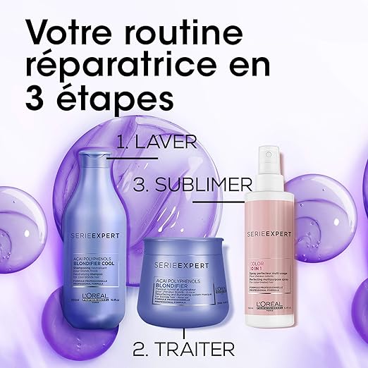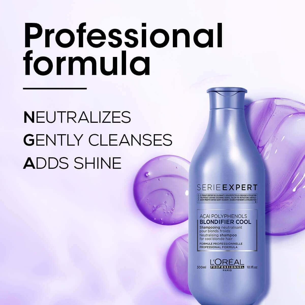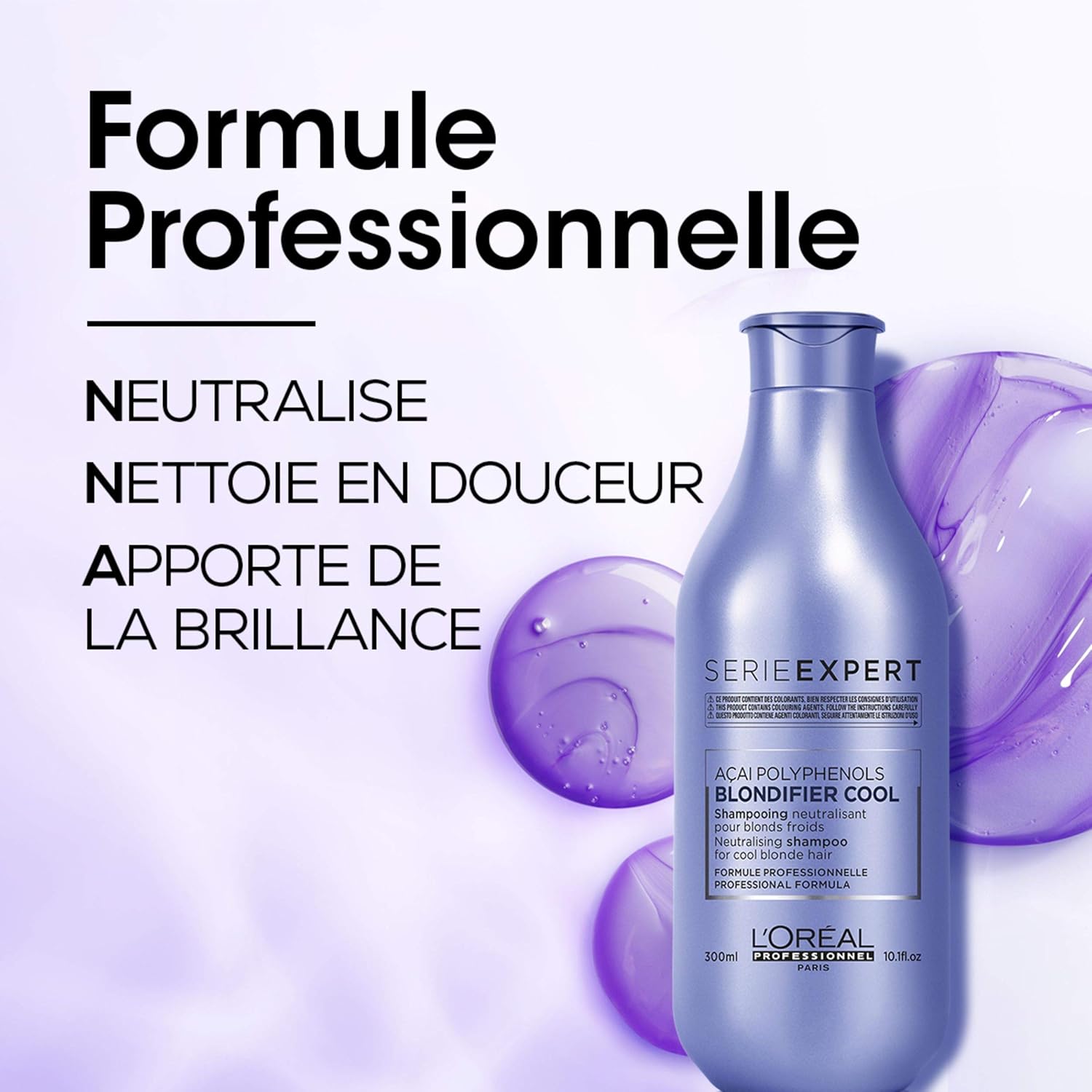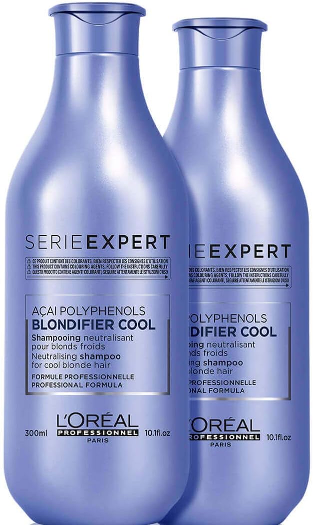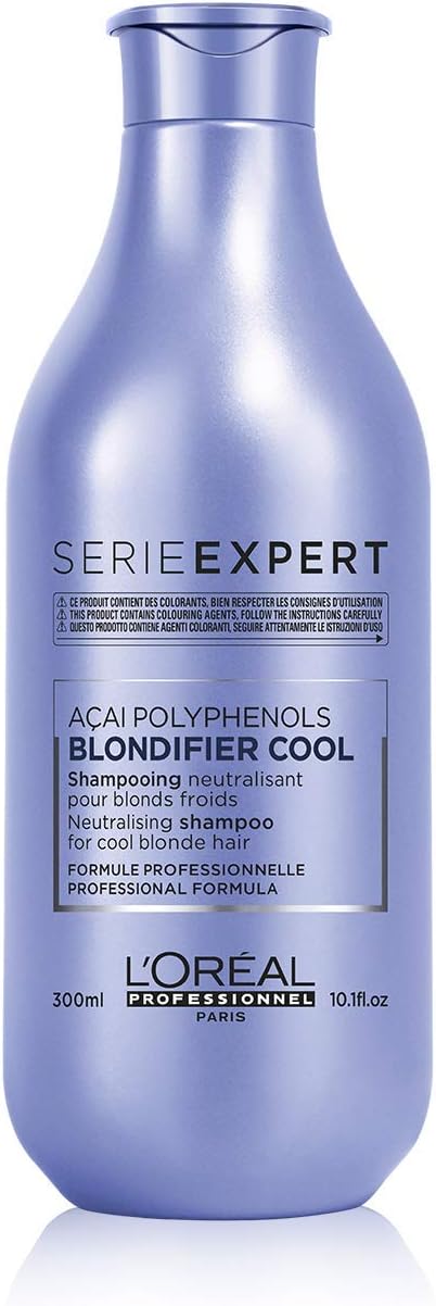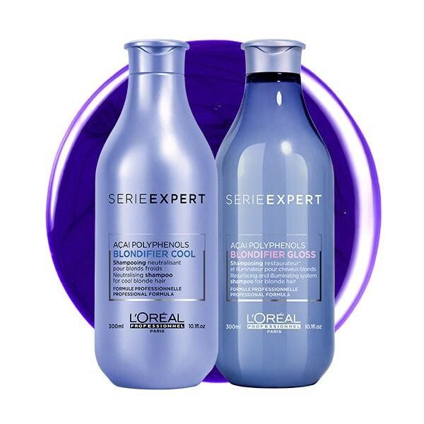 What It Does • Illuminates and restores blonde hair • Combats brassiness and warmth • Provides protection, softness, and shine What Else You Need to Know • Formulated with polyphenols which is contained in the acai berry extract This helps to provide nourishment and help • The shampoo gently. L'Oréal Professionnel Serie Expert Blondifier Illuminating Shampoo and Conditioner If your salon blonde lacks shine, give it a boost of radiance with L'Oréal Professionnel Serie Expert Blondifier Illuminating Shampoo and Conditioner This system gently cleanses and conditions to emphasize the multidimensional shine of blonde hair. Size 100ml / 34floz L'Oréal Professionnel Série Expert Blondifier Cool Shampoo is designed to enhance and illuminate blond hair Enriched with polyphenols found in the Açai berry extract and purple pigments, Blondifier Cool Shampoo neutralises undesired yellow tones while gently cleanses the hair fiberL'Oréal Série Expert Blondifier Cool Shampoo performs great on natural blond or.