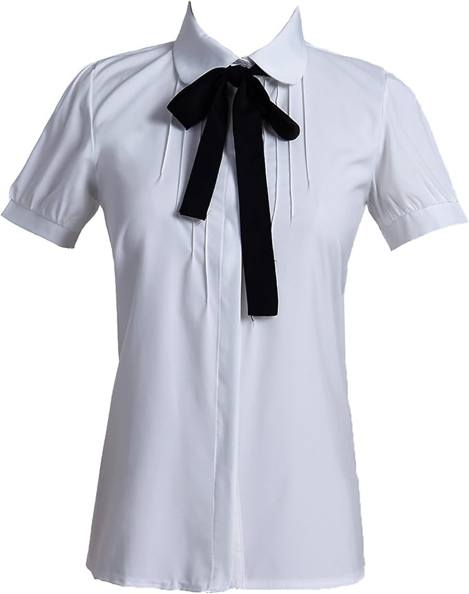 Taiduosheng Damen Blusen Mit Weisser Schleife Kurzarmelig Chiffon Knopfleiste Amazon De Bekleidung