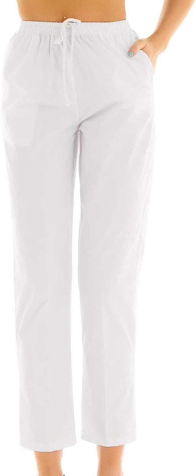 Bstt Damen Hosen Weisse Arbeitshosen Gummibund Neue Verbesserung Amazon De Bekleidung