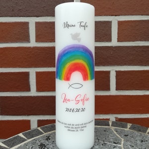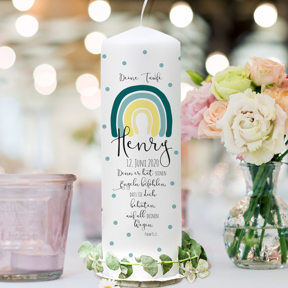 Taufkerze Mit Regenbogen Bedruckt Mit Name Datum Und Taufspruch
