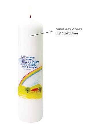 Striefchen Regenbogen Taufkerze Mit Aufdruck Des Namen Und Datum Sowie Taufspruch Amazon De Kuche Haushalt