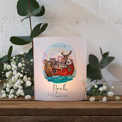 Taufkerze Kerze Zur Taufe Arche Mit Tieren Regenbogen Schiff Boot Wunschname Spruch Datum Individualisierbar Wk162 Ausgewahlte Grosse 6 2x Lichthullen Ohne Taufspruch Amazon De Kuche Haushalt