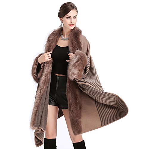 Gladiolusa Damen Poncho Cape Mantel Mit Kunstfell Outwear Amazon De Bekleidung