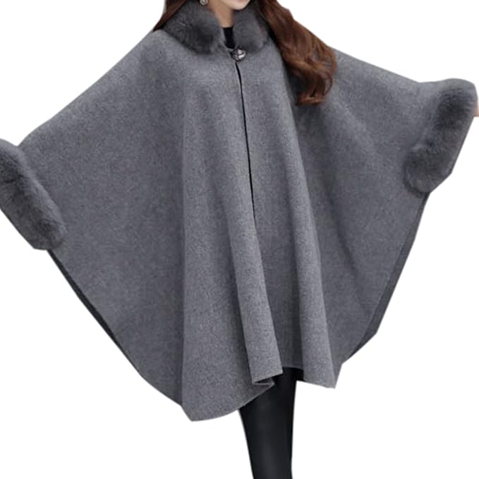 Elonglin Womens Faux Fur Cloak Coat Bat Sleeve Thick Wool Blend Trim Shawl Wrap Buckle Collar Trench Outwear Vintage Stylish Cape Poncho Coat Cardigan Cloak Jacket Winter Amazon Co Uk Clothing