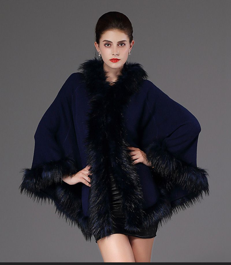Damenmode Damen Acryljacke Faux Fox Pelzkragen Schal Mantel Cape Mantel Poncho Outwear Kleidung Accessoires Iletim Istanbul Edu Tr