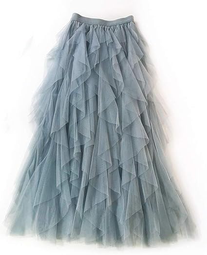 Binoda Skirt Damen Spitzenrock A Linie Layered Prinzessin Lotus Leaf Stitching Stufig Tull Midi Rock Casual Fashion Maxi Rock Blau Amazon De Kuche Haushalt