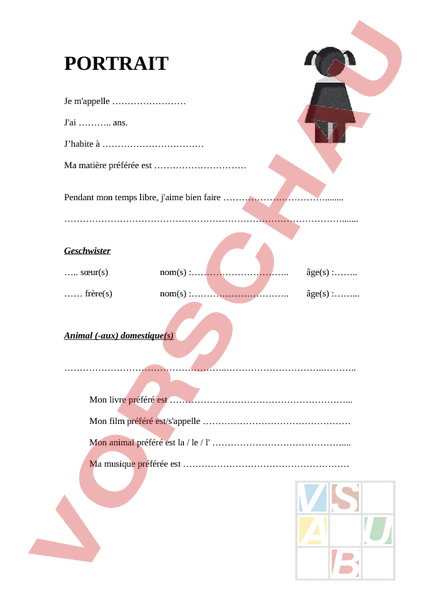 Mon Portrait Unterrichtsmaterial Im Fach Franzosisch Franzosischunterricht Franzosisch Lernen Fur Kinder Franzosisch Lernen