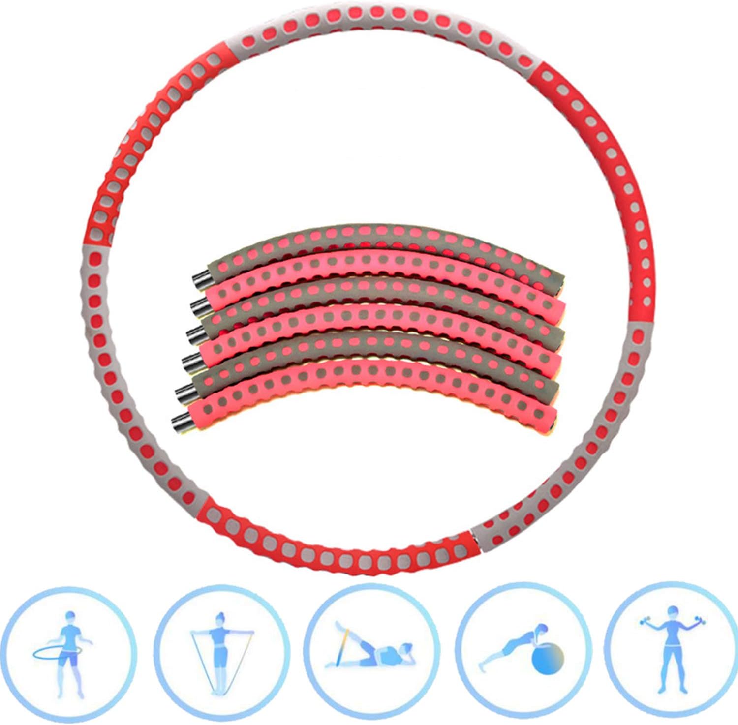 Aiweite Hula Hoop Reifen Hula Hoop Fur Erwachsene Kinder Zur Gewichtsabnahme Und Massage Ein 6 8 Teiliger Abnehmbarer Hula Hoop Reifen Fur Fitness Training Buro Oder Bauchmuskelkonturen 1 2 Kg