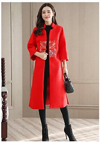 Gz Mittellange Mantel Stickerei Grossen Roten Mantel Frau Knie Amazon De Sport Freizeit