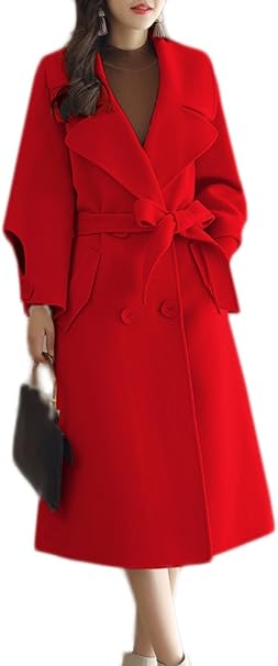 Damen Lange Armel Mantel Mode Klassischen Mantel Retro Wollmantel Einfache Warme Gemutliche Rote Lange Jacke Red Xxxl Amazon De Bekleidung