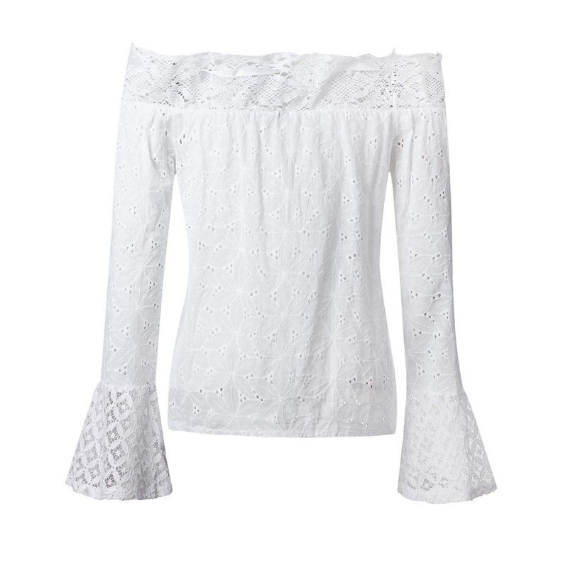 Grosshandel Schulterfrei Blumenspitze Weisse Bluse Frauen Top Aushohlen Flare Armel Damen Bluse Shirt Frauen Sexy Chemise Blusas Von Mallnine 9 33 Auf De Dhgate Com Dhgate