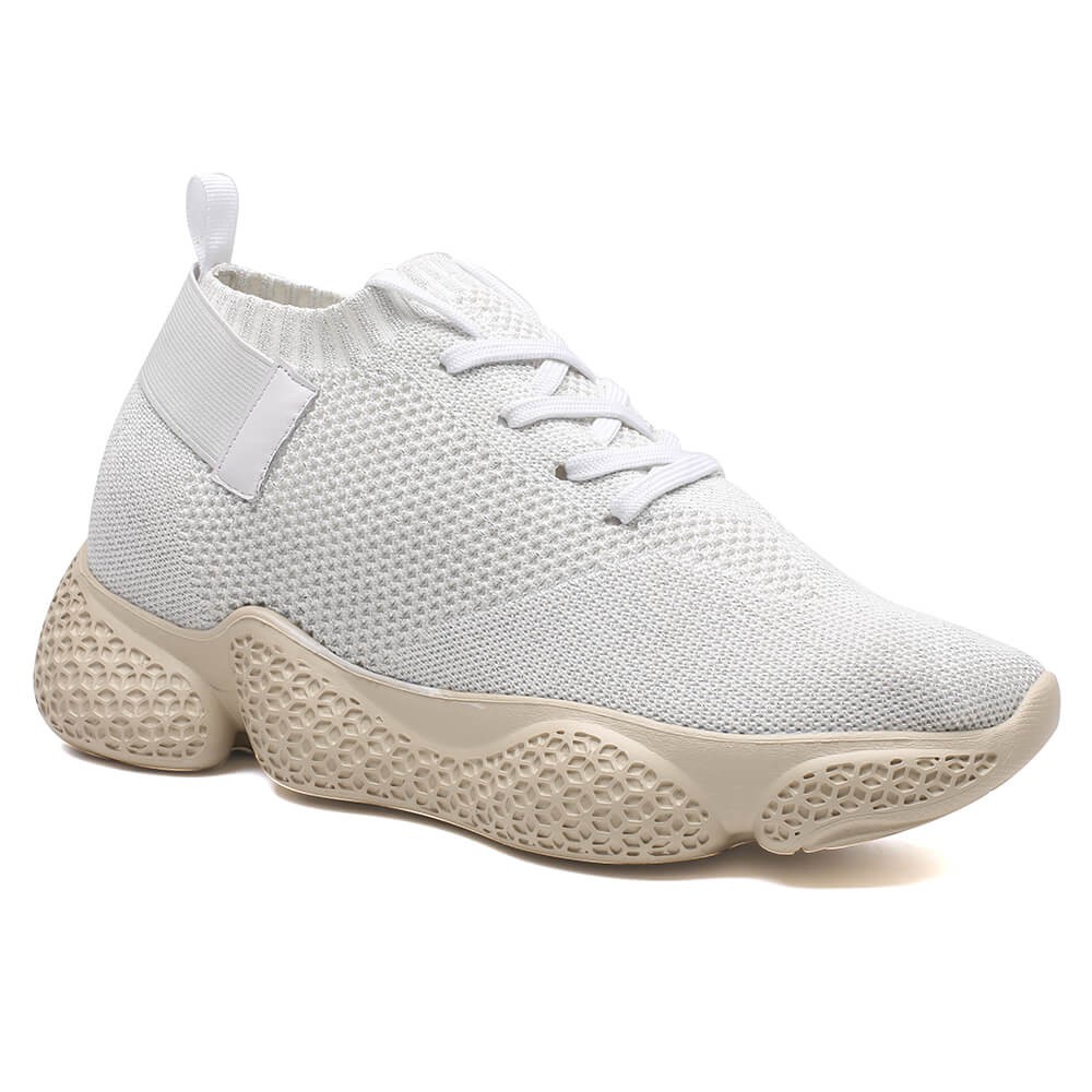 Frauen Hohe Zunehmende Turnschuhe Hohe Zunehmende Schuhe Klobige Sneaker Weisse Strickschuhe Damen 7 Cm