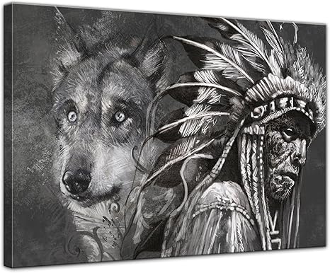 Wandbild Wolf Und Hauptling Tattoo Art 60x50 Cm Bilder Als Leinwanddruck Fotoleinwand Urban Graphic Indianer Tiere Zeichung Eines Indianers Amazon De Kuche Haushalt