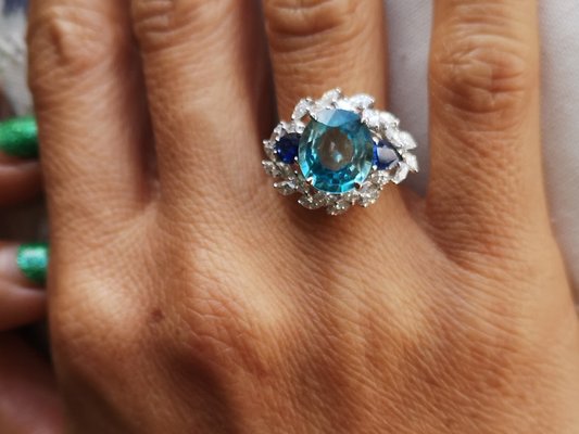 Ring Aus 18 Karat Weissgold In Naturfarbe Mit Blauen Zirkonia Steinen Saphiren Von 4 5 Karat Bei Pamono Kaufen