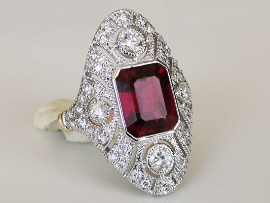 Ring Aus 18 Karat Weissgold Mit 5 7 Karat Rhodolite Diamanten Im Art Deco Stil Verziert Bei Pamono Kaufen