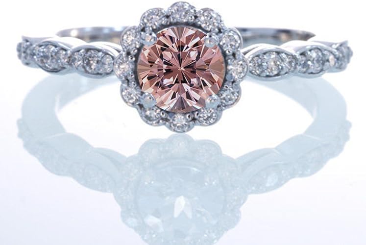Eva 5 Karat Diamant Ring Mit Halo Diamant Einstellung In Rose Gold Diamond Ring Engagement Vintage Engagement Rings Unique Engagement Rings