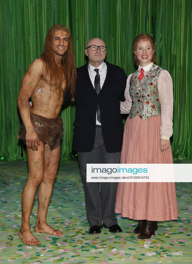 Phil Collins Rechts Mit Den Beiden Musical Darstellern Gian Marco Schiaretti Und Matthis Lernhardt Beuren Der Den Jungen Tarzan Spielt Wer Bei Der Premiere Von Tarzan In Stuttgart Uber Den Roten Teppich Flanierte Zeigen