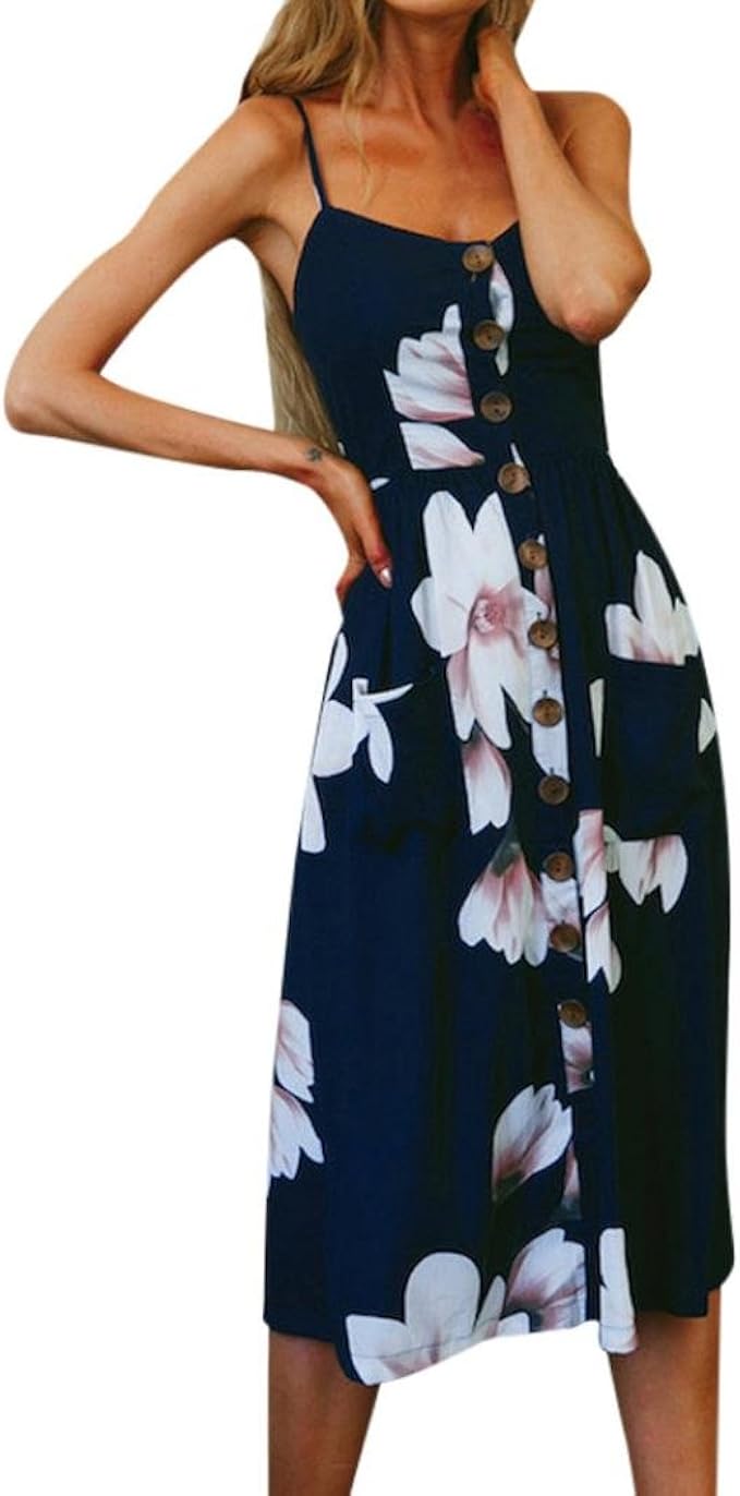 Yanhoo Sommerkleid Damen Knielang Sexy Blumendruck Knopfe Aus Schulter Armelloses Camisole Kleid Prinzessin Kleid Damenmode Sommer Sale Amazon De Bekleidung