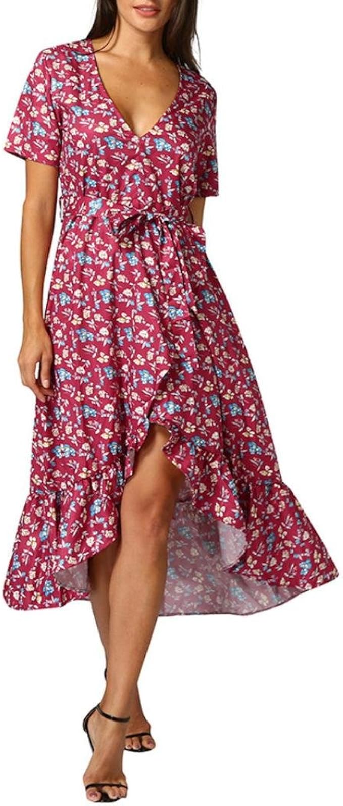 Ecowish Sommerkleider Damen Kurzarm V Ausschnitt Strand Blumen Kleider Abendkleid Knielang Amazon De Bekleidung