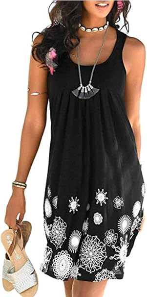 Ziyyoohy Women S Summer Dress A Line Sleeveless Knee Length Tunic Dress Leisure Beach Tunic Beach Amazon Co Uk Clothing