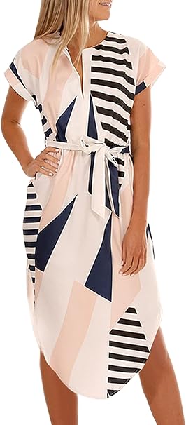 Lopily Lose Tunika Blusenkleider Damen Bandage Vorne Kreuz Kariertes Kleider Strandkleid Sommer Modisch Oversize Unregelmassiger Kleidung Mode Herren Mode Mode