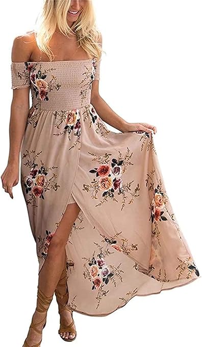 Xiaoxiao666 Summer Dresses Women Flowers Maxi Dress Off Shoulder Evening Dress Beach Dress Party Shoulder Dresses M A Beige A101 Amazon Co Uk Kitchen Home