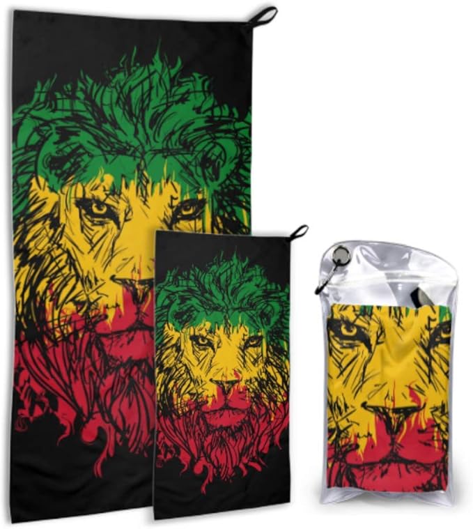 Jochuan Rasta Thema Lowenkopf Auf Schwarz 2 Paket Mikrofaser Kinder Handtuch Strandtuch Manner Set Schnell Trocknend Beste Fur Gym Reise Rucksack Yoga Fitnes Amazon De Bekleidung