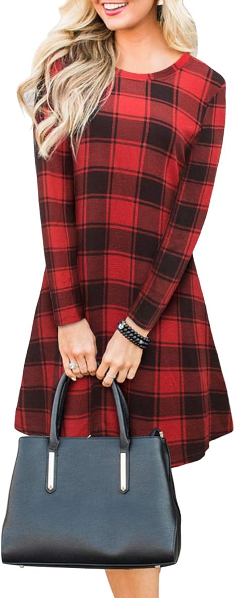 Blooming Jelly Damen Plaid Kleid Langarm Swing Pullover Winter T Shirt Kleider Fur Frauen Amazon De Bekleidung
