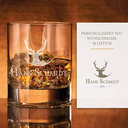 Whiskyglas Mit Gravur Hirsch Design Whiskey Glas Mit Massivem Boden Personalisierbar Mit Namen Und Datum Individuelle Geschenkidee Fur Wahre Geniesser Amazon De Kuche Haushalt