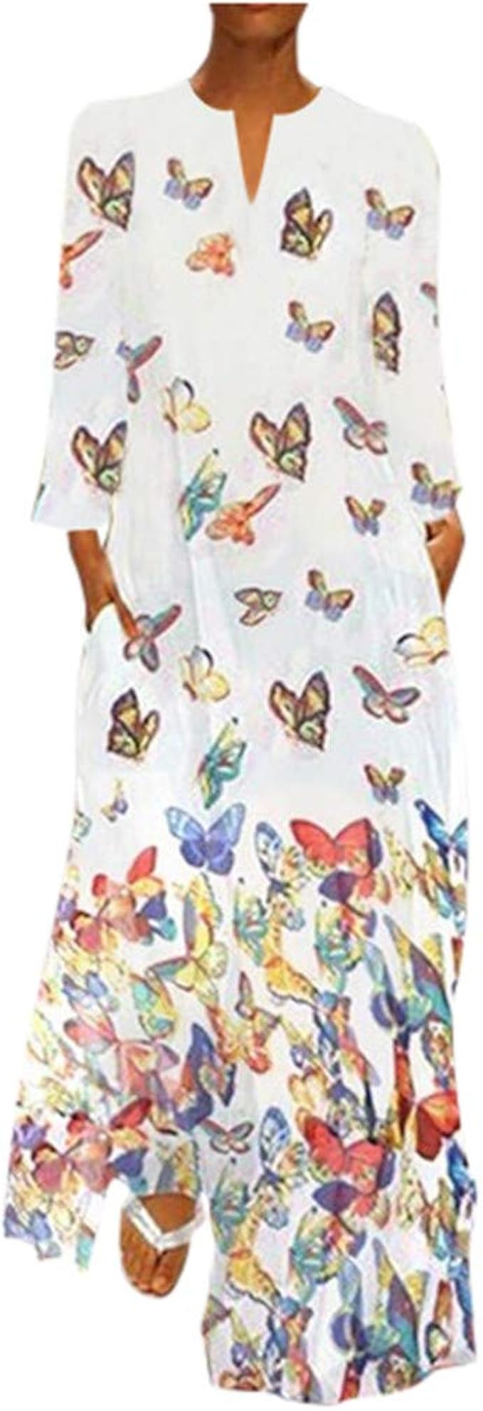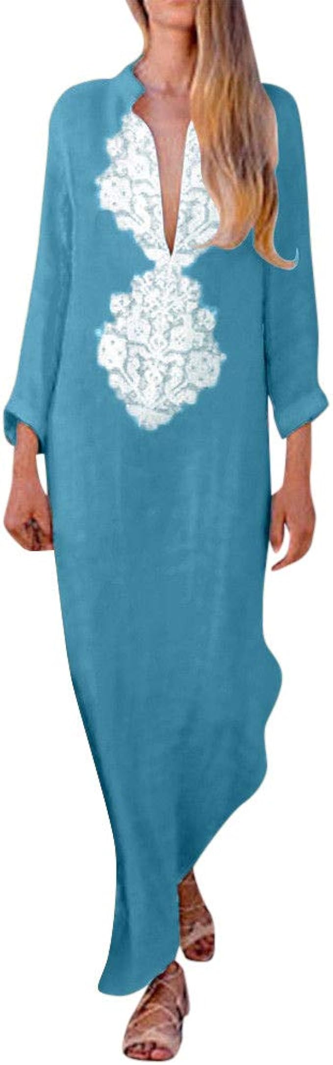 Oksea Damen Baggy Langarm Kleid Herbst Winter Mode Damen Leinen Gedruckt Langarm V Ausschnitt Maxikleid Dunn Trendigen Split Unregelmassige Hem Baggy Kaftan Langes Kleid Rocke Abendkleid Maxikleider Amazon De Bekleidung