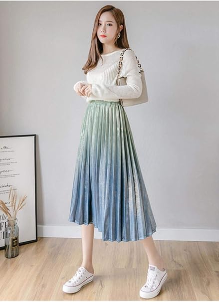 Hsdfkd Damen Rocke Herbst Winter Mode Damen A Linie Faltenrock Lassig Gold Samt Maxirock Grun Amazon De Sport Freizeit