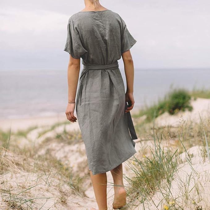 Shobdw Herbst Winter Mode Damen Leinen Gedruckt Langarm V Ausschnitt Maxikleid Dunn Trendigen Split Unregelmassige Hem Baggy Kaftan Langes Kleid Rocke Abendkleid Maxikleider Amazon De Bekleidung