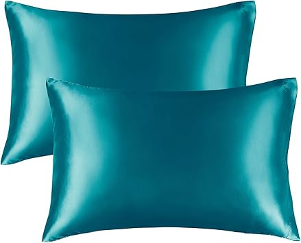 Bedelite Satin Seiden Kissenbezuge Fur Haar Und Haut Blaugrun Standardgrosse 2er Pack Superweicher Kissenbezug Mit Hotelverschluss 50 8 X 66 Cm Amazon De Kuche Haushalt