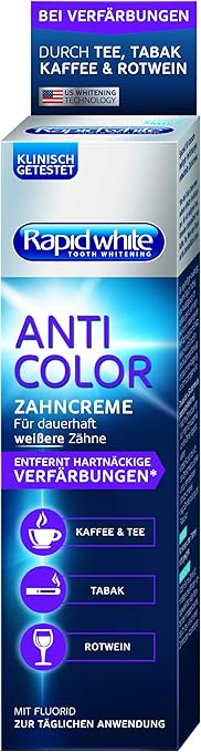 Rapid White Anti Color Toothpaste 75 Ml Whitening Zahnpasta Fur Weissere Zahne Zahnaufhellung Fur Zuhause Ohne Wasserstoffperoxid Amazon De