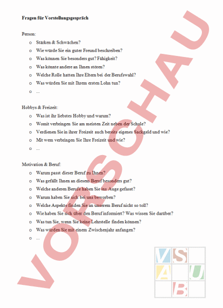 Arbeitsblatt Fragen Am Vorstellungsgesprach Diverses Facherubergreifend Anderes Thema