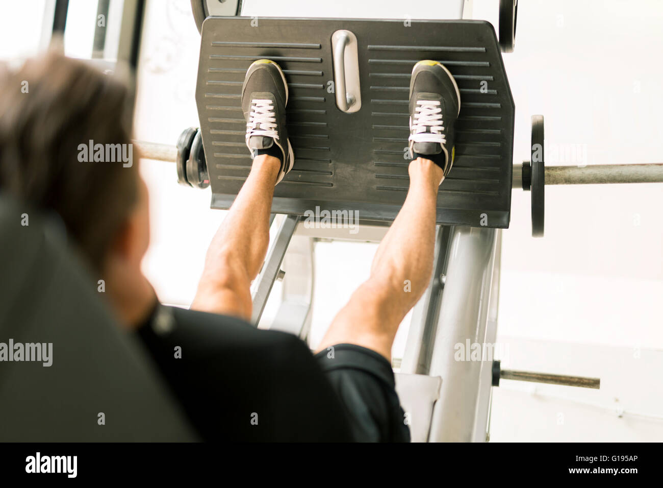 Junge Mannliche Training In Einem Fitnessstudio Und Bein Ubungen Stockfotografie Alamy