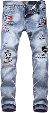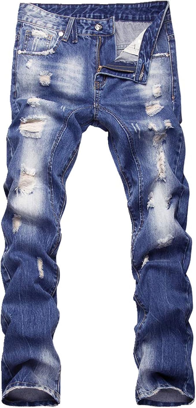 Men Jeans Pants Hippie Regular Fit Long Jeans Boys Torn Holes Trend Streetwear Denim Casual Pants Amazon Co Uk Clothing